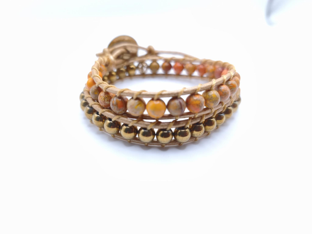 Bracelet double rang jaspe impérial et hématite