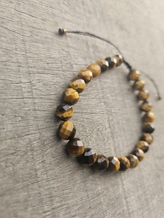 Bracelet homme œil du tigre facetté, perles 8mm montées sur fil, ajustable