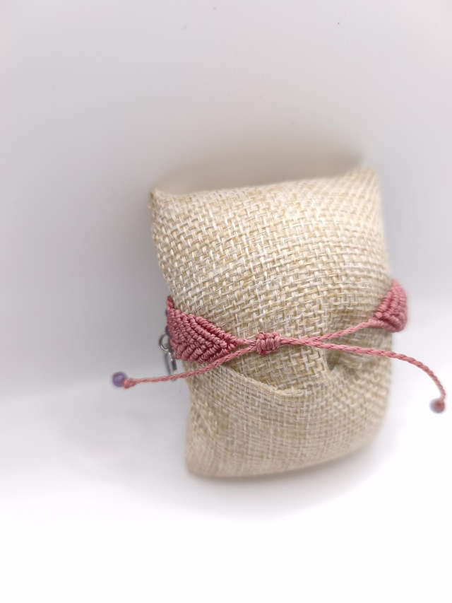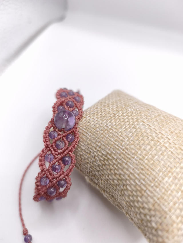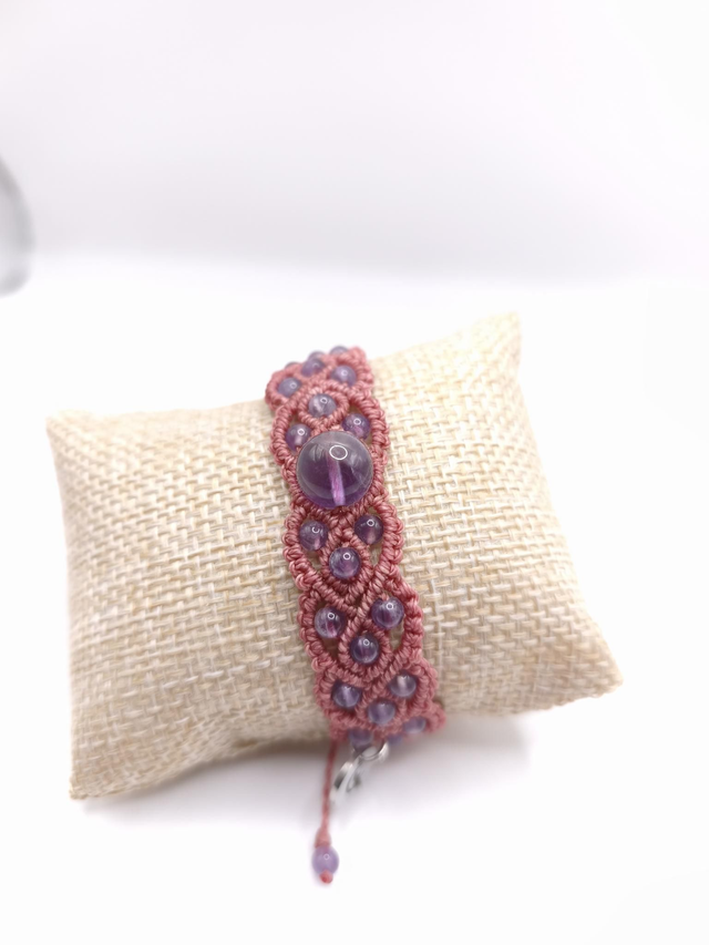 Bracelet bohème macramé améthyste perle centrale 10mm et perles 4mm
