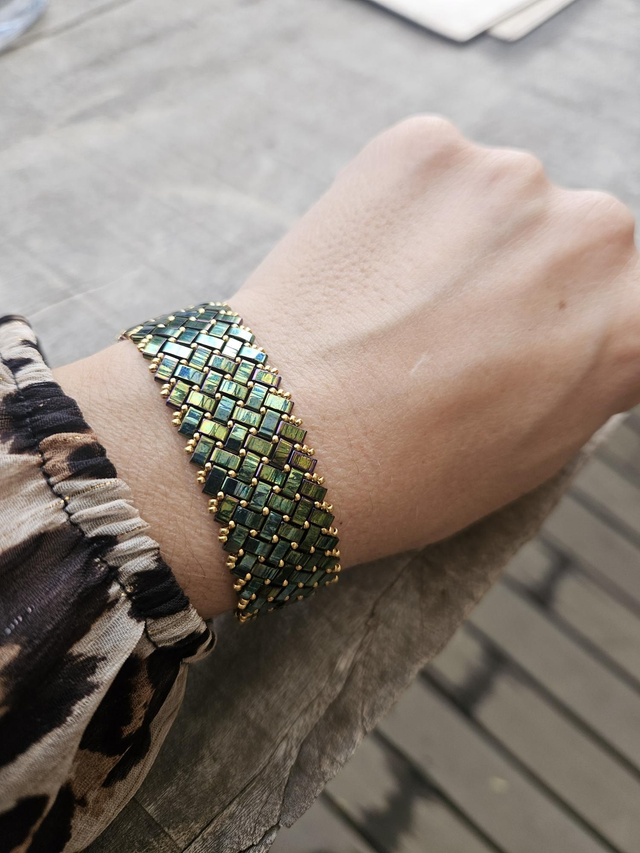 Ce bracelet tissé à la main avec ces perles de verre viendront embellir vos tenues