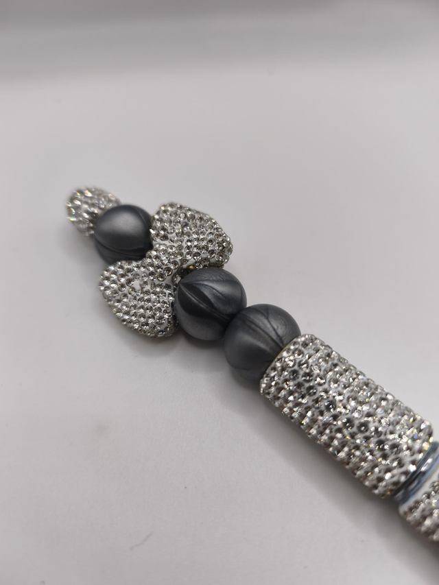 Stylo noeud strass argenté
